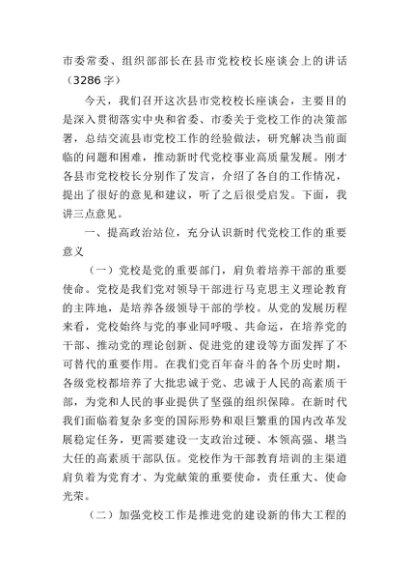 【七哥公文】2025年:市委常委、组织部部长在县市党校校长座谈会上的讲话(3286字)+更多免费公文+VX:QiGeGongWen2024