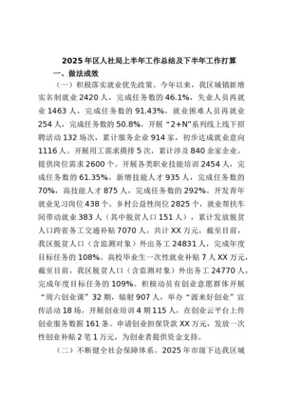 / 【七哥公文】2025年:2025年区人社局上半年工作总结及下半年工作打算+更多免费公文+VX:QiGeGongWen2024