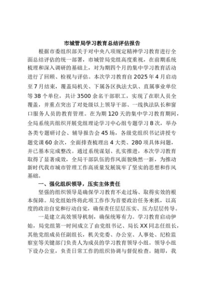 / 【七哥公文】2025年:市城管局学习教育总结评估报告+更多免费公文+VX:QiGeGongWen2024