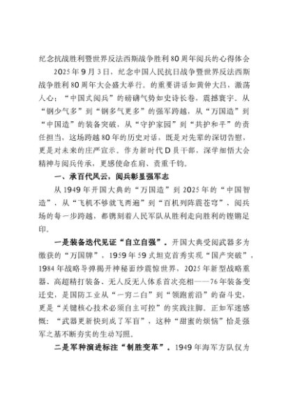 【七哥公文】2025年:纪念抗战胜利暨世界反法西斯战争胜利80周年阅兵的心得体会+更多免费公文+VX:QiGeGongWen2024