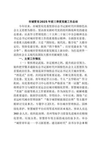 / 【七哥公文】2025年:市城管局2025年前三季度党建工作总结+更多免费公文+VX:QiGeGongWen2024