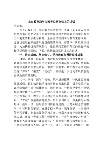 / 【七哥公文】2025年:在市教育局学习教育总结会议上的讲话+更多免费公文+VX:QiGeGongWen2024