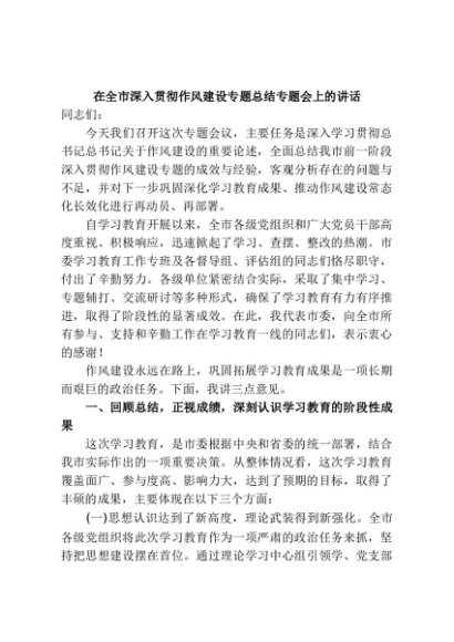/ 【七哥公文】2025年:在全市深入贯彻作风建设专题总结专题会上的讲话+更多免费公文+VX:QiGeGongWen2024