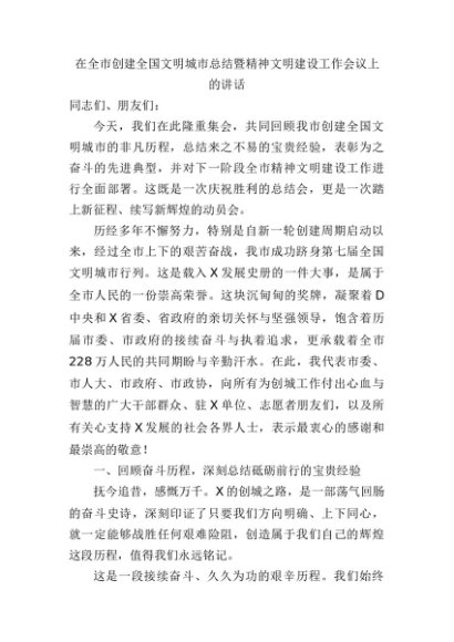 【七哥公文】2025年:在全市创建全国文明城市总结暨精神文明建设工作会议上的讲话+更多免费公文+VX:QiGeGongWen2024