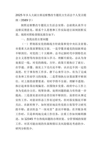 【七哥公文】2025年:2025年乡人大副主席巡察整改专题民主生活会个人发言提纲(3589字)+更多免费公文+VX:QiGeGongWen2024
