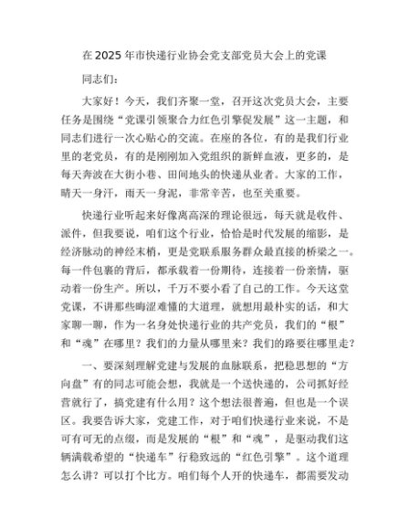 / 【七哥公文】2025年:在市快递行业协会党支部党员大会上的党课+更多免费公文+VX:QiGeGongWen2024