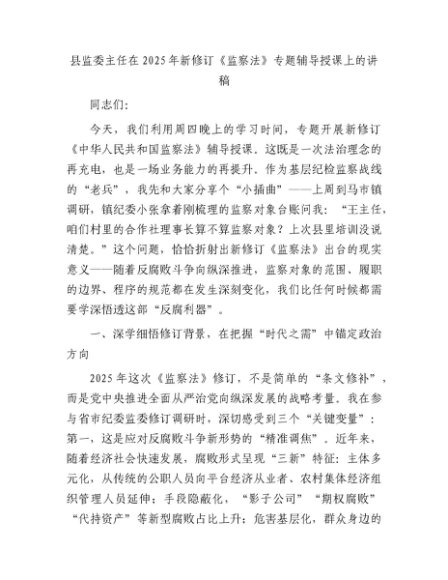 【七哥公文】2025年:新修订《监察法》专题辅导授课上的讲稿(纪委监委党课)+更多免费公文+VX:QiGeGongWen2024