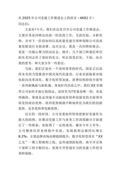 【七哥公文】2025年:在2025年国企党建工作推进会上的讲话(4692字)+更多免费公文+VX:QiGeGongWen2024