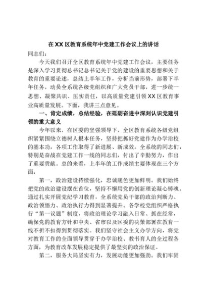 / 【七哥公文】2025年:在XX区教育系统年中党建工作会议上的讲话+更多免费公文+VX:QiGeGongWen2024
