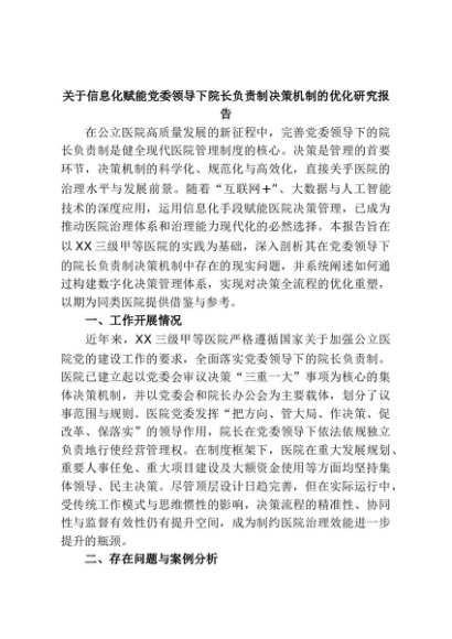 【七哥公文】2025年:关于信息化赋能党委领导下院长负责制决策机制的优化研究报告+更多免费公文+VX:QiGeGongWen2024