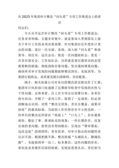 【七哥公文】2025年:在2025年集团审计整改“回头看”专项工作推进会上的讲话+更多免费公文+VX:QiGeGongWen2024