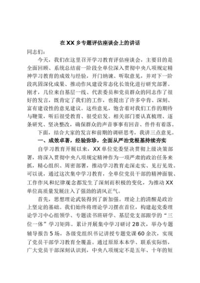 【七哥公文】2025年:在XX乡专题评估座谈会上的讲话+更多免费公文+VX:QiGeGongWen2024