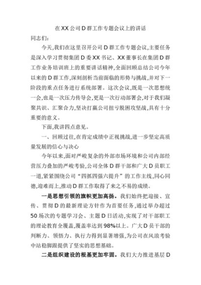 / 【七哥公文】2025年:在XX公司党群工作专题会议上的讲话+更多免费公文+VX:QiGeGongWen2024
