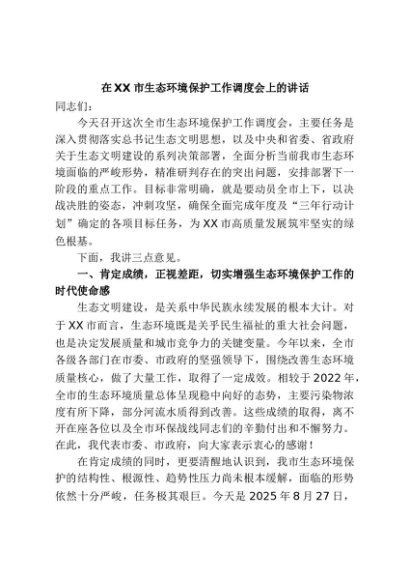 / 【七哥公文】2025年:在XX市生态环境保护工作调度会上的讲话+更多免费公文+VX:QiGeGongWen2024