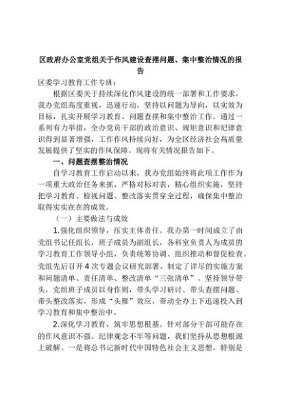 【七哥公文】2025年:区政府办公室党组关于作风建设查摆问题、集中整治情况的报告+更多免费公文+VX:QiGeGongWen2024