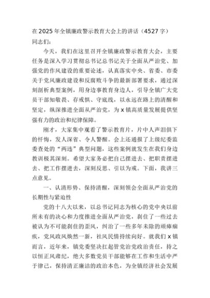 【七哥公文】2025年:在2025年全镇廉政警示教育大会上的讲话(4527字)+更多免费公文+VX:QiGeGongWen2024