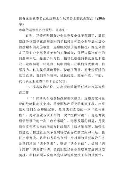 【七哥公文】2025年:国企党委书记在巡察工作反馈会上的表态发言(2866字)+更多免费公文+VX:QiGeGongWen2024