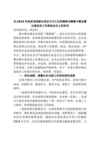【七哥公文】2025年:在2025年政府系统群众身边不正之风和腐败问题集中整治暨以案促改工作推进会议上的讲话+更多免费公文+VX:QiGeGongWen2024