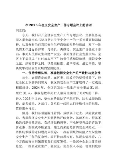 / 【七哥公文】2025年:在2025年全区安全生产工作专题会议上的讲话+更多免费公文+VX:QiGeGongWen2024