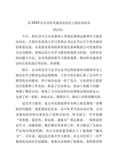 / 【七哥公文】2025年:在2025年公司作风建设总结会上的总结讲话+更多免费公文+VX:QiGeGongWen2024