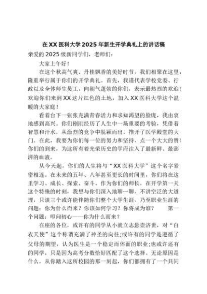 / 【七哥公文】2025年:在XX医科大学2025年新生开学典礼上的讲话稿+更多免费公文+VX:QiGeGongWen2024