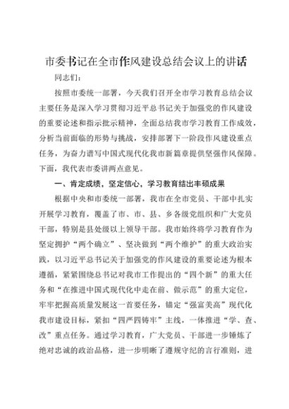 / 【七哥公文】2025年:市委书记在全市作风建设总结会议上的讲话+更多免费公文+VX:QiGeGongWen2024