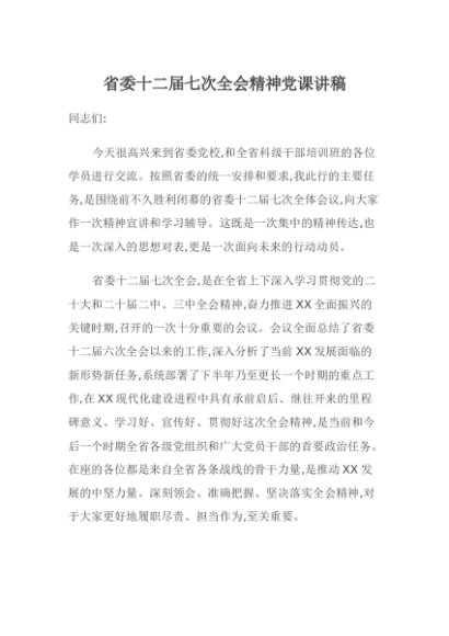 / 【七哥公文】2025年:省委十二届七次全会精神党课讲稿+更多免费公文+VX:QiGeGongWen2024