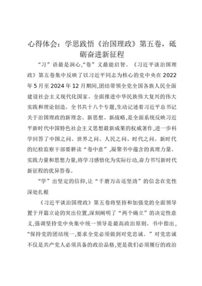 【七哥公文】2025年:心得体会:学思践悟《治国理政》第五卷,砥砺奋进新征程+更多免费公文+VX:QiGeGongWen2024