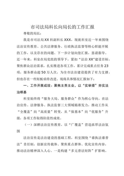 / 【七哥公文】2025年:市司法局科长向局长的工作汇报+更多免费公文+VX:QiGeGongWen2024