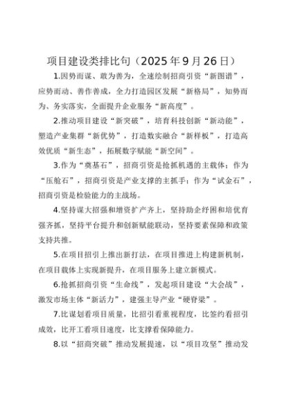 【七哥公文】2025年:项目建设类排比句(2025年9月26日)+更多免费公文+VX:QiGeGongWen2024