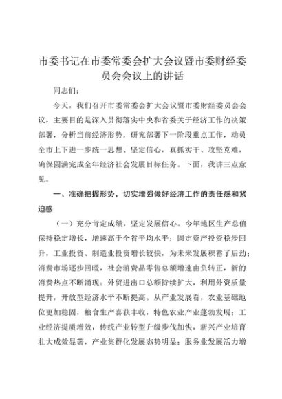 【七哥公文】2025年:市委书记在市委常委会扩大会议暨市委财经委员会会议上的讲话+更多免费公文+VX:QiGeGongWen2024