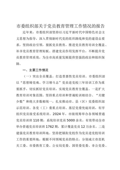 / 【七哥公文】2025年:市委组织部关于党员教育管理工作情况的报告+更多免费公文+VX:QiGeGongWen2024