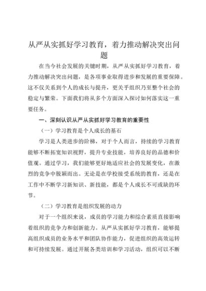 【七哥公文】2025年:研讨发言:从严从实抓好学习教育,着力推动解决突出问题+更多免费公文+VX:QiGeGongWen2024