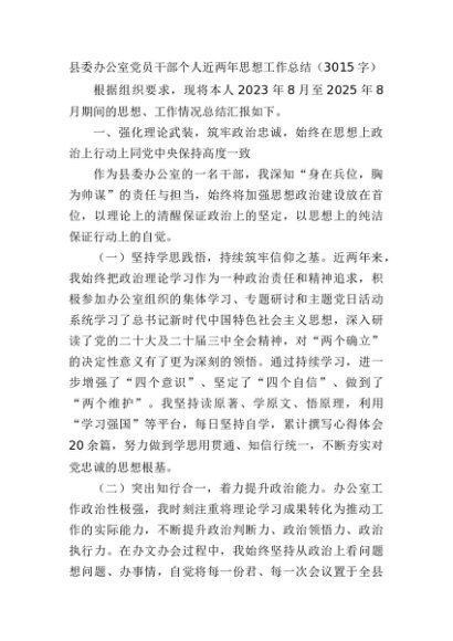【七哥公文】2025年:县委办公室党员干部个人近两年思想工作总结(3015字)+更多免费公文+VX:QiGeGongWen2024
