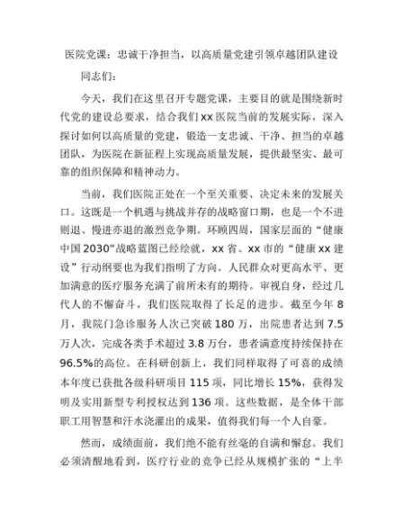 【七哥公文】2025年:医院党课:忠诚干净担当,以高质量党建引领卓越团队建设+更多免费公文+VX:QiGeGongWen2024