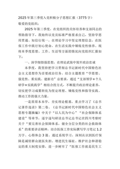 【七哥公文】2025年:2025年第三季度入党积极分子思想汇报(3775字)+更多免费公文+VX:QiGeGongWen2024