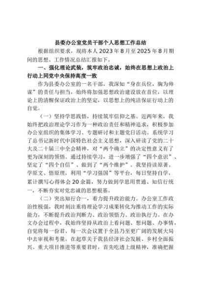 / 【七哥公文】2025年:县委办公室党员干部个人思想工作总结+更多免费公文+VX:QiGeGongWen2024