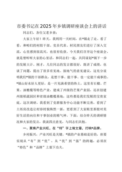 / 【七哥公文】2025年:市委书记在2025年乡镇调研座谈会上的讲话+更多免费公文+VX:QiGeGongWen2024