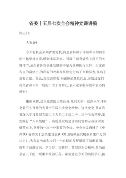 / 【七哥公文】2025年:省委十五届七次全会精神党课讲稿+更多免费公文+VX:QiGeGongWen2024