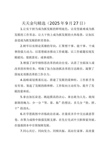 【七哥公文】2025年:天天金句精选(2025年9月27日)+更多免费公文+VX:QiGeGongWen2024