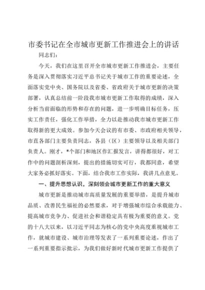/ 【七哥公文】2025年:市委书记在全市城市更新工作推进会上的讲话+更多免费公文+VX:QiGeGongWen2024