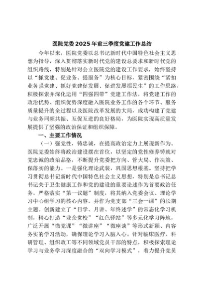 / 【七哥公文】2025年:医院党委2025年前三季度党建工作总结+更多免费公文+VX:QiGeGongWen2024