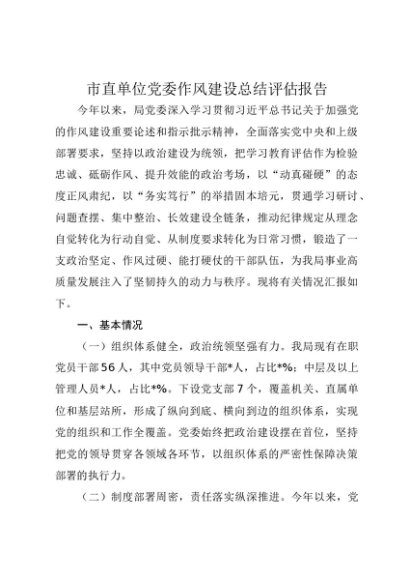 / 【七哥公文】2025年:市直单位党委作风建设总结评估报告+更多免费公文+VX:QiGeGongWen2024