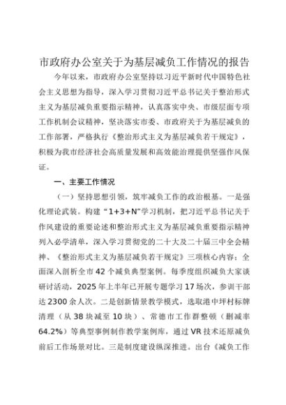 / 【七哥公文】2025年:市政府办公室关于为基层减负工作情况的报告+更多免费公文+VX:QiGeGongWen2024