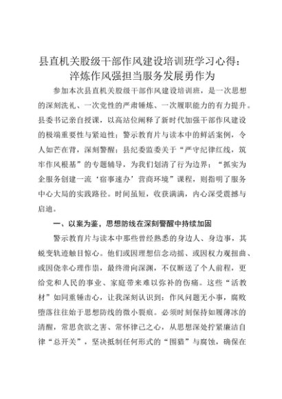 【七哥公文】2025年:县直机关股级干部作风建设培训班学习心得:淬炼作风强担当服务发展勇作为+更多免费公文+VX:QiGeGongWen2024