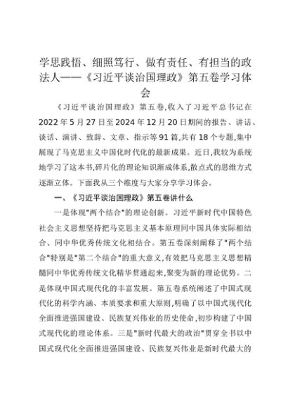 【七哥公文】2025年:学思践悟、细照笃行、做有责任、有担当的政法人——《习近平谈治国理政》第五卷学习体会+更多免费公文+VX:QiGeGongWen2024