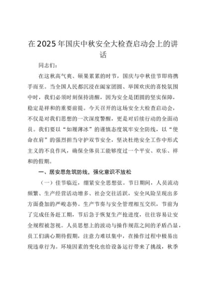 / 【七哥公文】2025年:在2025年国庆中秋安全大检查启动会上的讲话+更多免费公文+VX:QiGeGongWen2024