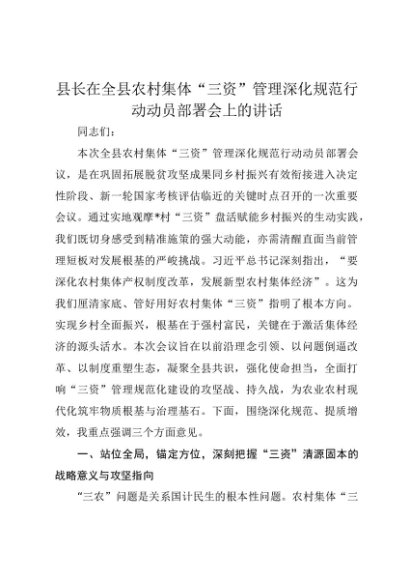 【七哥公文】2025年:县长在全县农村集体“三资”管理深化规范行动动员部署会上的讲话+更多免费公文+VX:QiGeGongWen2024
