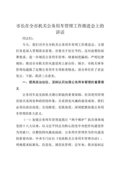 / 【七哥公文】2025年:市长在全市机关公务用车管理工作推进会上的讲话+更多免费公文+VX:QiGeGongWen2024