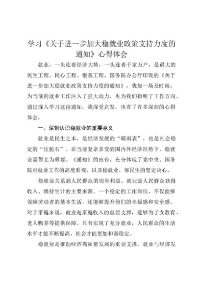 【七哥公文】2025年:学习《关于进一步加大稳就业政策支持力度的通知》心得体会+更多免费公文+VX:QiGeGongWen2024